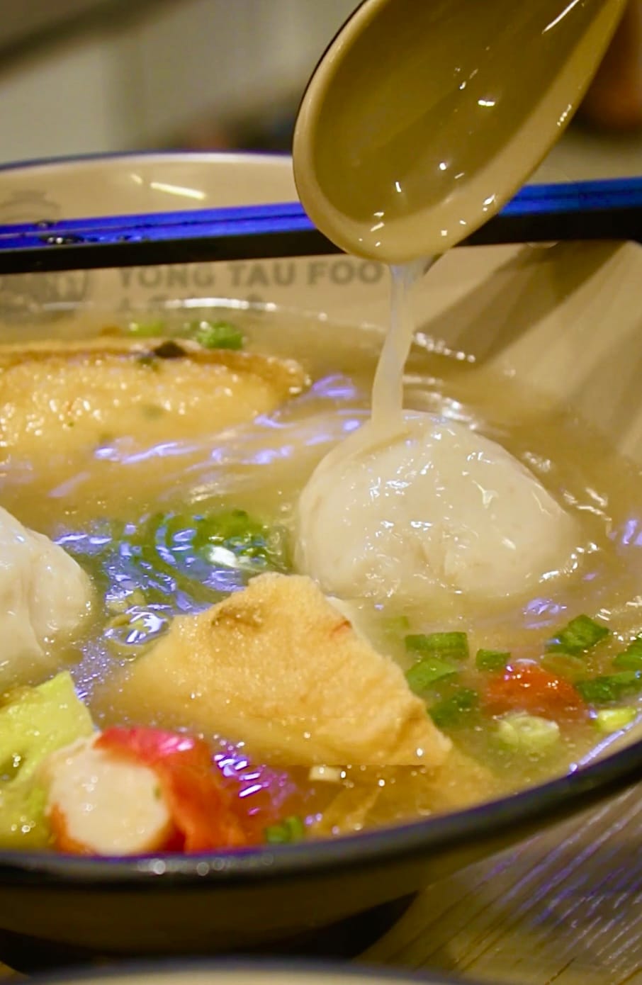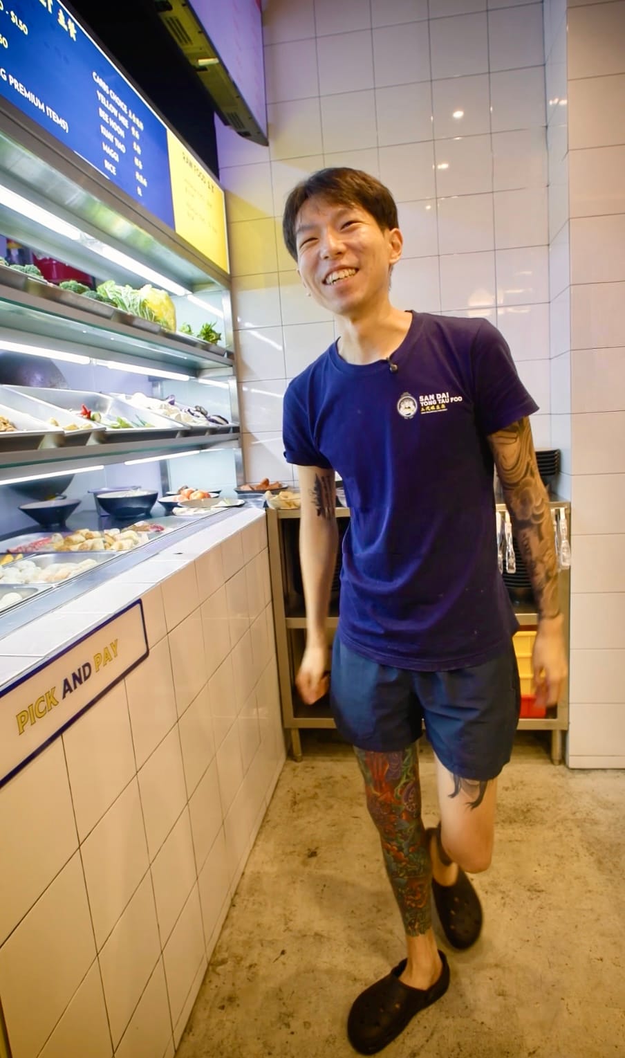 Third-gen hawker Delonix Tan, 27, who’s in the midst of taking over the well-known SanDai Fishball business, opened his own yong tau foo shop at myVillage in Serangoon Gardens earlier this July. At SanDai Yong Tau Foo, one thing stands out: the fishballs are priced at $1 each, noticeably higher than the usual $0.50 to $0.80 at most yong tau foo stalls.