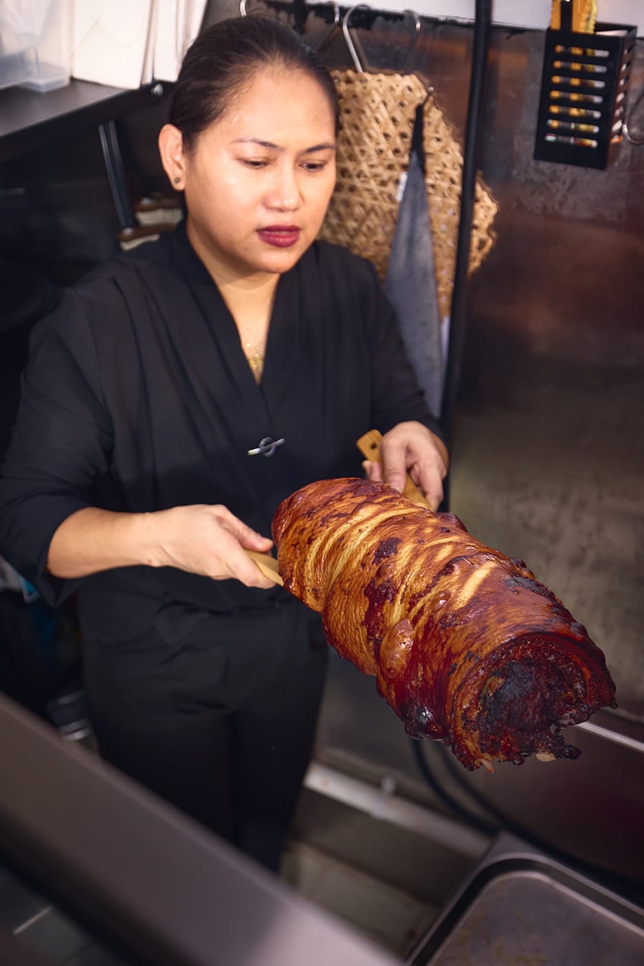 She first made it in 2014 out of sheer necessity, when she couldn’t get a whole lechon flown in from Cebu, which is considered the lechon capital of the Philippines, for her son’s baptism and decided to recreate it herself. It became such a hit with guests that she started getting orders for it.