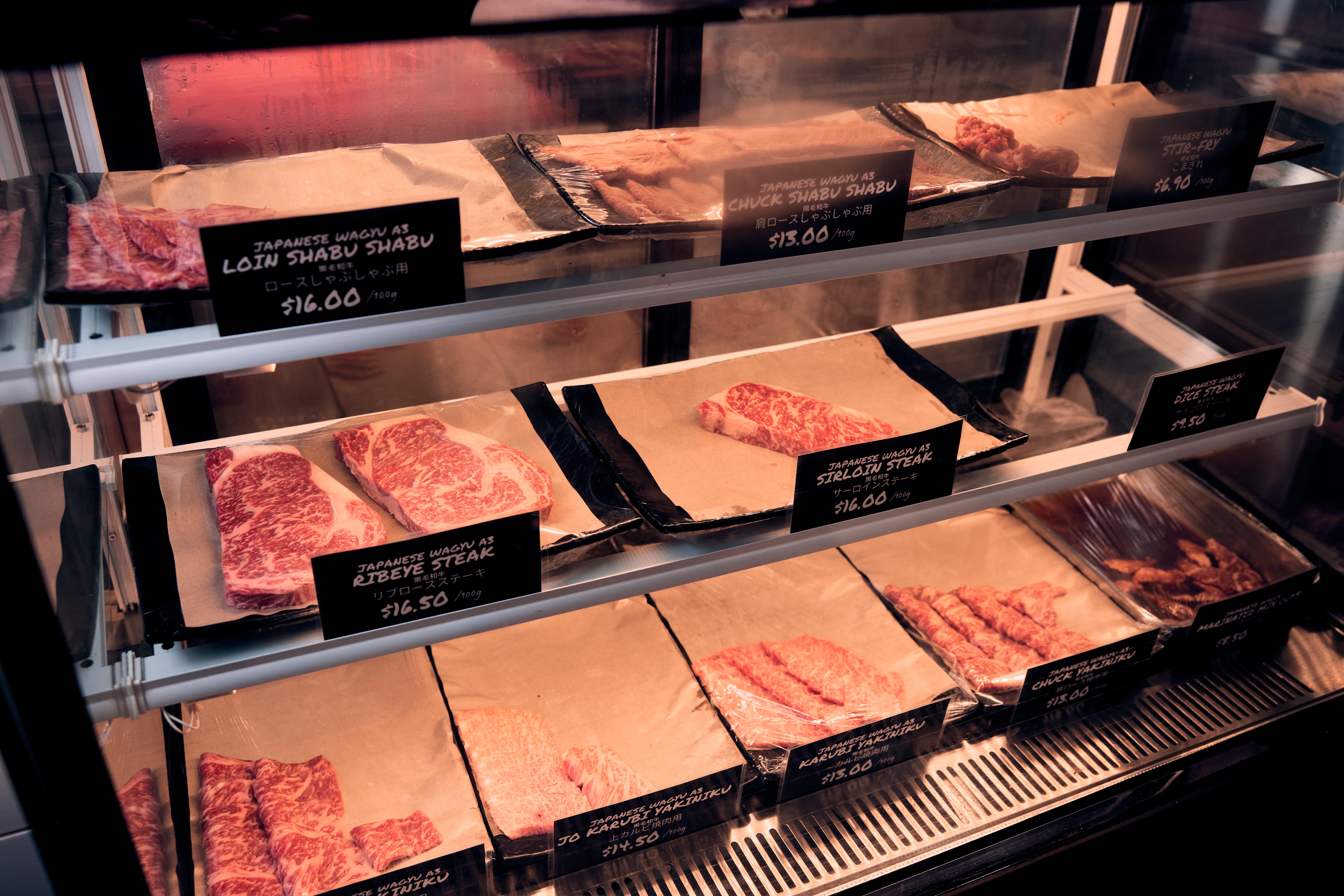For a rough price comparison, a 100g portion of Kata (chuck roll) Shabu Shabu wagyu beef from Iwate at Meidi-ya supermarket costs around $18.90.