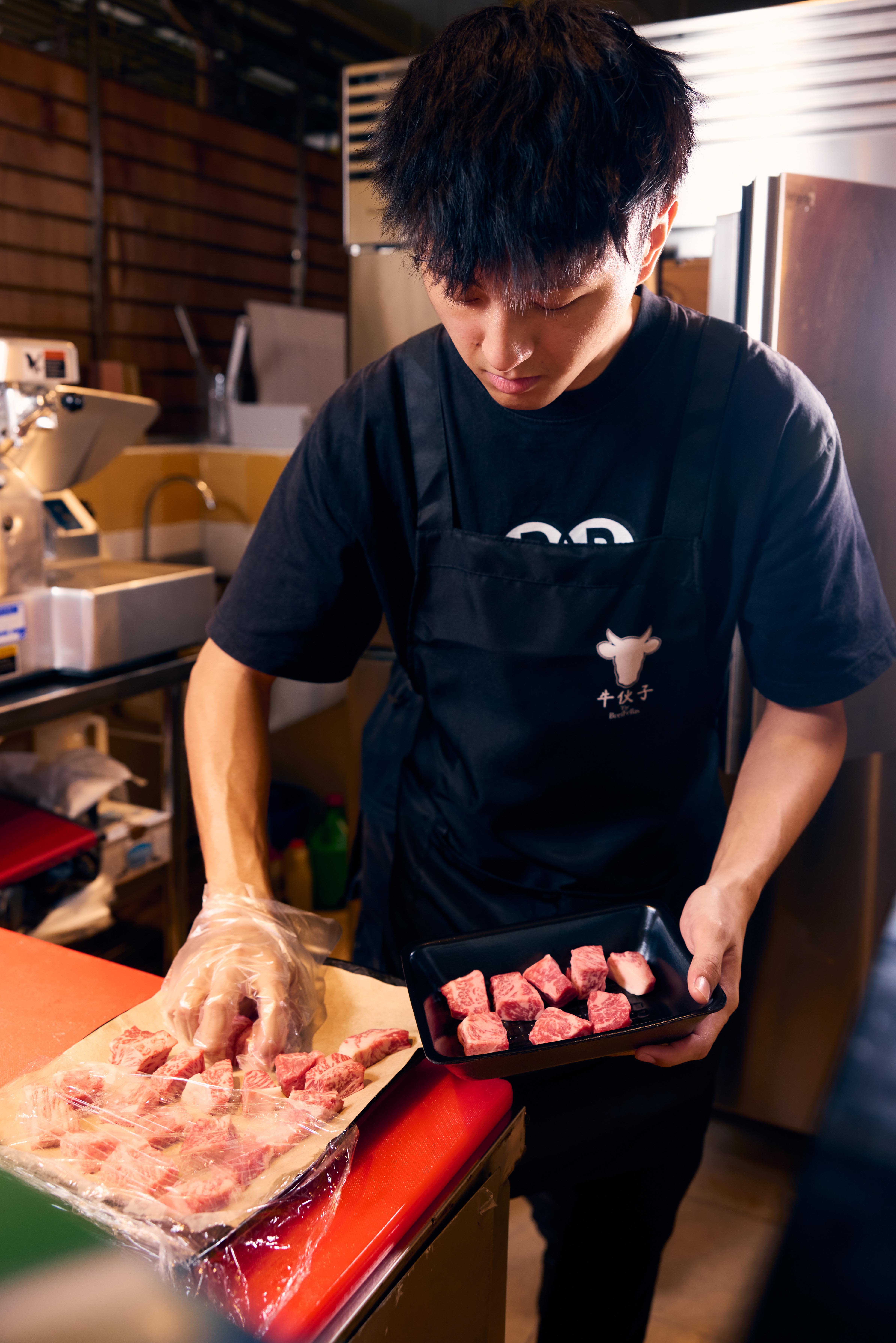 Max shares: “When we process a 2kg block, only around 1.6kg can be used for shabu shabu and steak. The rest are tendon, fat and unusable parts.”