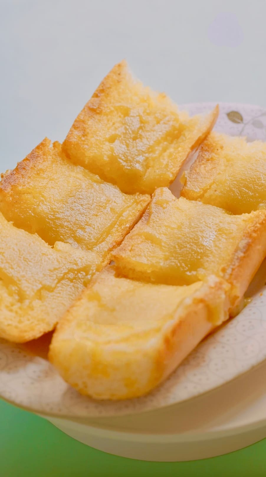 A fusion number for Gen-Zs? A buttered baguette is drizzled with a milky vanilla sauce. “It has some milk powder mixed in. It’s different,” Tan explains.