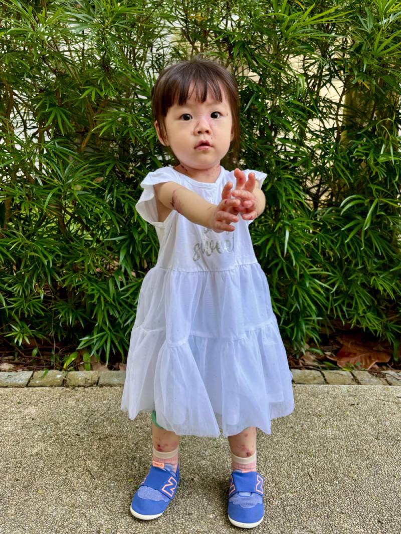 “Upon her birth, we immediately noticed missing layers of skin on parts of both her feet and toes, something our gynaecologist hadn’t seen before,” said her mother, Sui Kae Ling, 37.